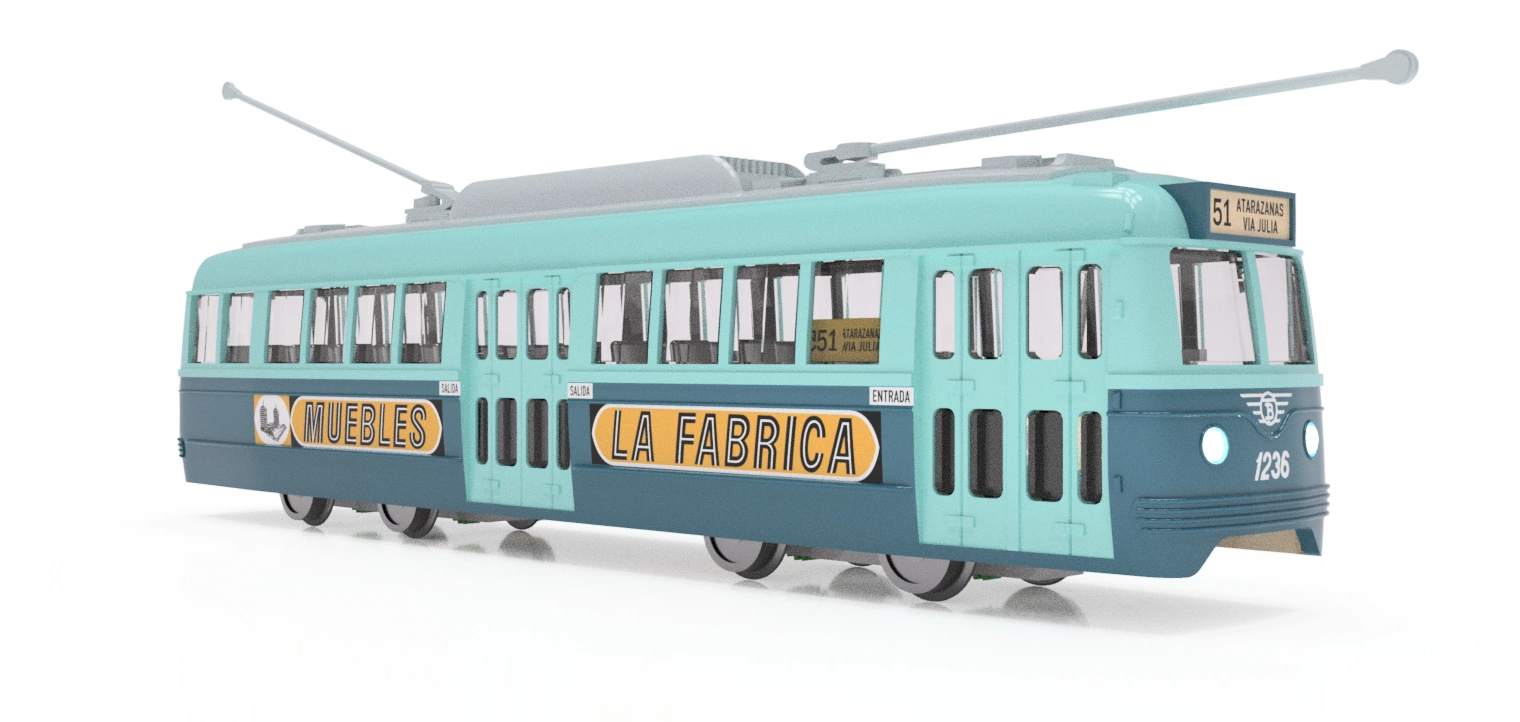 Embárcate en un viaje al pasado con esta meticulosa reproducción a escala H0 y pintada a mano del icónico tranvía 1200 de Barcelona. El modelo reproduce el tranvía fabricado por Carde y Escoriaza en 1945, con los colores que fueron imagen de los transportes de Barcelona a partir de los años 60, con publicidad de Muebles la Fabrica y con los carteles de la línea 51: Atarazanas - Via Julia.