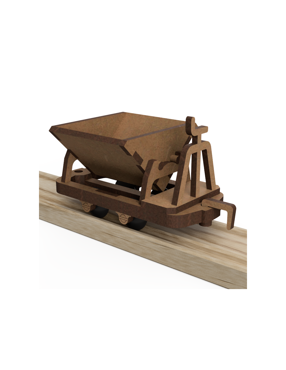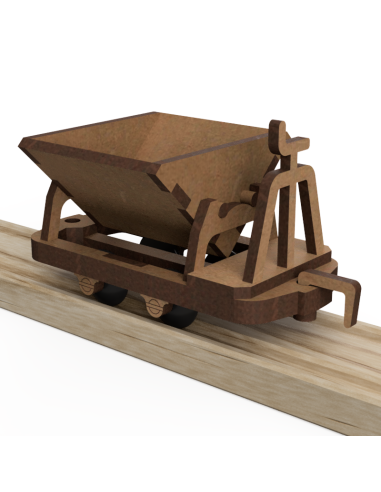 Este kit de madera para montar y pintar está inspirado en las tolvas mineras. Su uso fue muy extendido y diverso, se usaron en las minas, en la construcción de puentes, canales, túneles, etc..